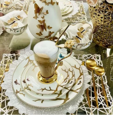 Nothing says summer like this new dinnerware set. It is painted with delicate-colored butterflies, and tree branches, and edged with real 14k gold. Feel alive when presenting your dinner party’s finest on these exciting plates. Delicate, but durable, this is the set of the season.