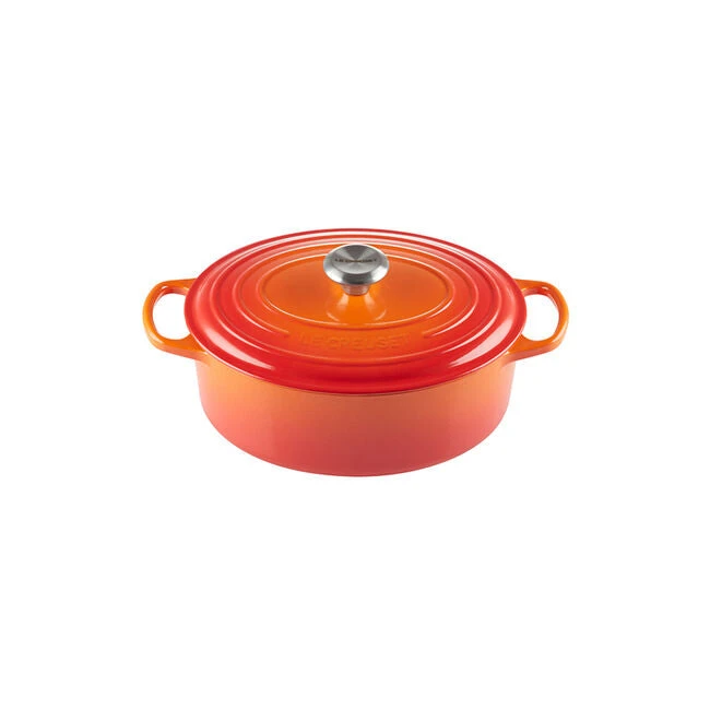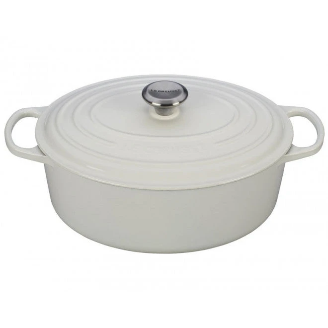 The iconic Le Creuset oval Dutch oven is indispensable in the kitchens of home cooks and professional chefs alike. Long recognized for its strength and durability, cast iron is the prime material for slow-cooking, braising and roasting, thanks to its ability to maintain even and consistent heat. The enameled oval Dutch oven needs no seasoning, and it’s suitable for both stovetop and oven use. The oval shape is particularly suited to longer cuts of meat or poultry.