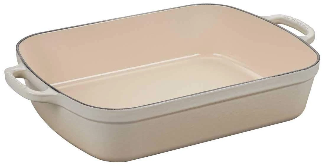 The even heat distribution of this versatile enameled cast iron roaster makes it ideal for oven-roasted chicken breasts, homemade lasagna, casseroles and side dishes. Taking a cue from our iconic French ovens, we’ve added our signature loop handles for easier lifting when wearing oven mitts.