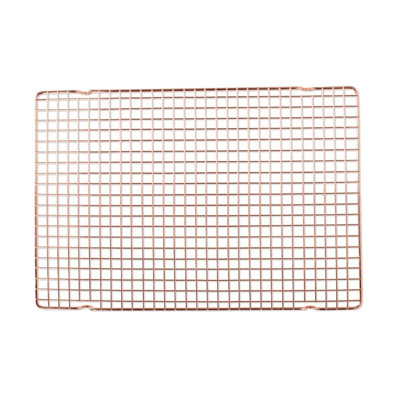 - This gorgeous copper-plated grid is the perfect size to display your favorite treats in style! Not for oven use. Large enough to cool whatever you’ve bake