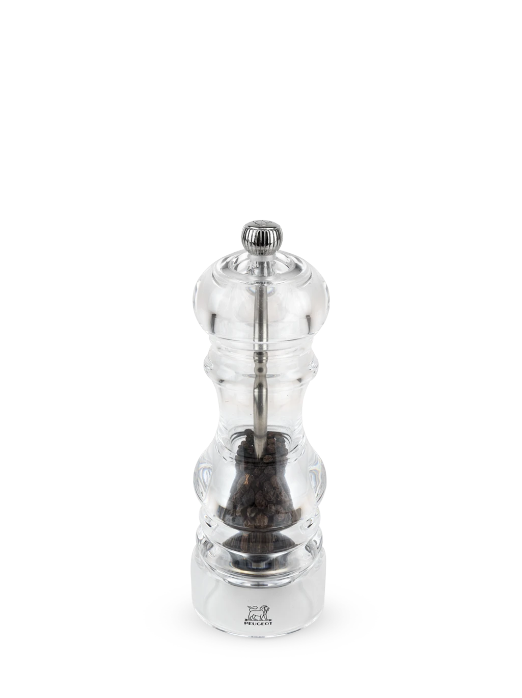 With its timeless design, the Peugeot Nancy 18 cm pepper mill is an essential for the table and the kitchen. Produced entirely in acrylic, it shows off its contents and means that the reservoir being empty is never a sudden surprise. The adjustment knob, placed on the top of the mill, is used to adjust grinding precisely, from the finest to the coarsest, to exactly match the flavors that you want.