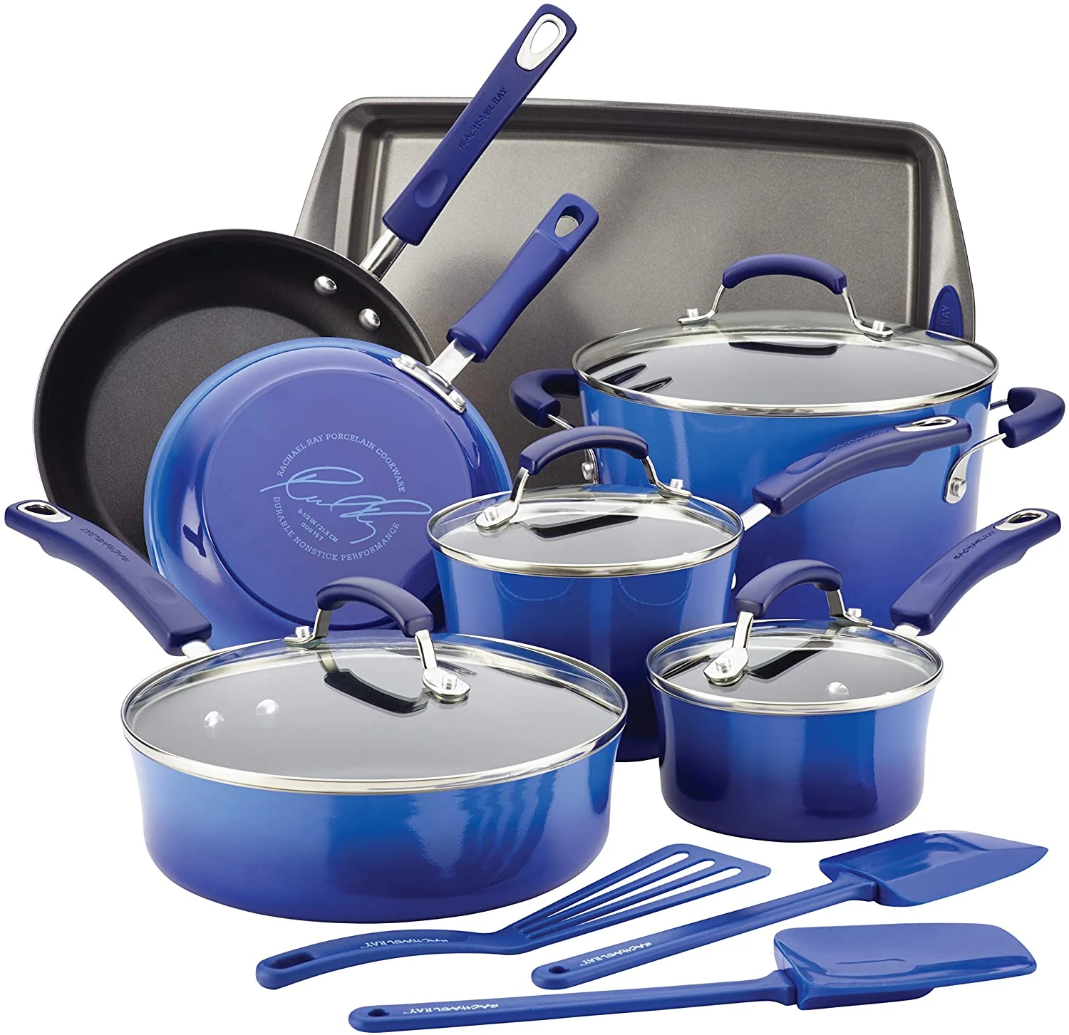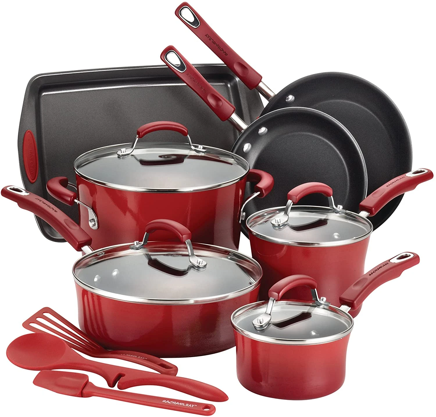 - VERSATILE POTS AND PANS: Oven safe to 350°F, the cooking set provides a great foundation for other items from the Rachael Ray collection