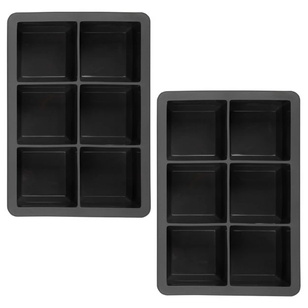 - Create Long-Lasting Ice: These trays come in a set of 2. Finished in a neutral charcoal color, each tray creates 6 extra-large 2-inch cubes. The durable, food-grade silicone allows easy removal of one or two cubes at a time.