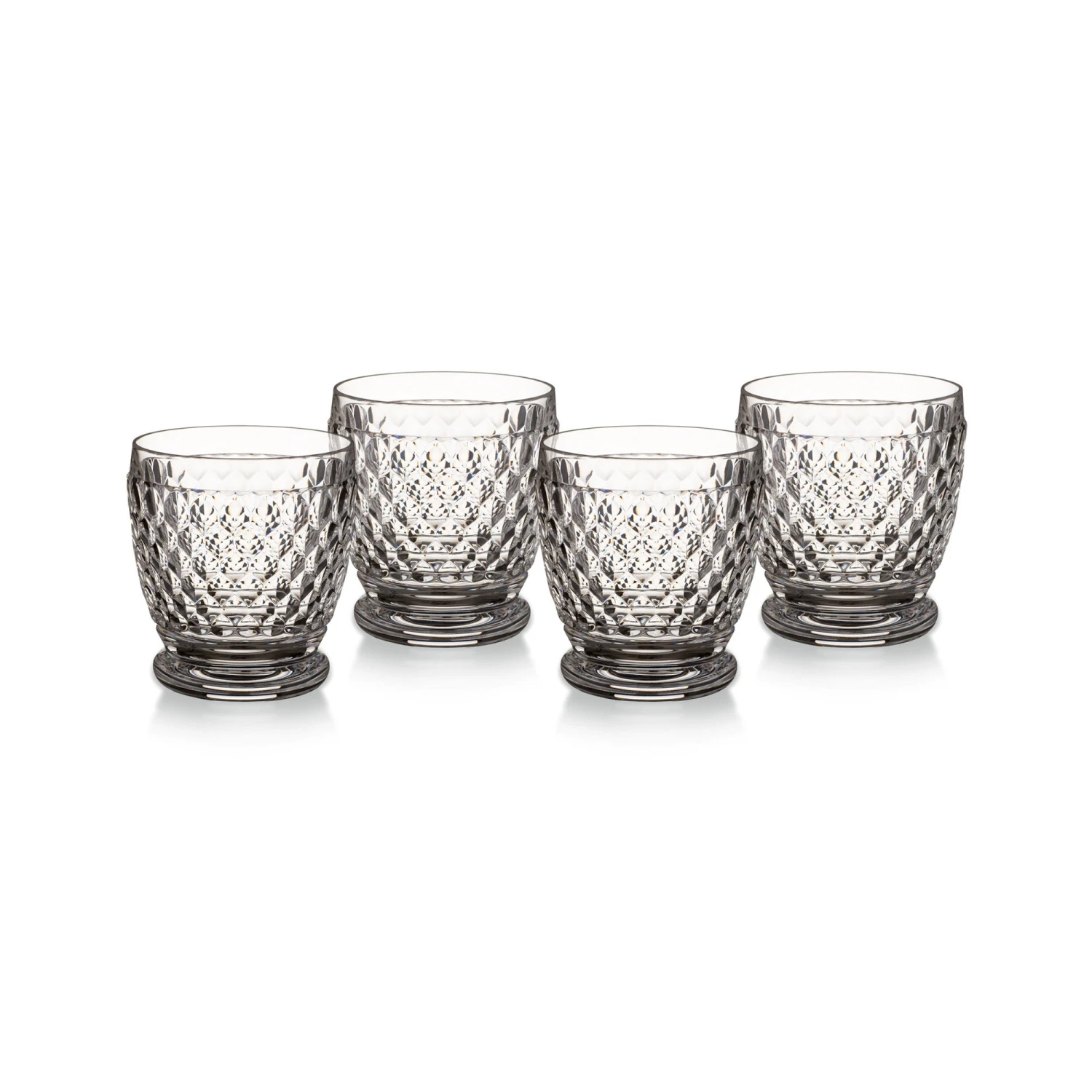 The successful Boston coloured collection combines elegant lead-free crystal glass with robust, timelessly beautiful shapes. Inspired by the classic country style, the diamond pattern perfectly complements any number of tableware collections. The glasses come in an attractive cardboard giftbox with an image of the product. These shot glasses are perfect for enjoying an after-dinner drink, a strong vodka or even a sweet liqueur. Salute, Sláinte, Chin-chin and Prost! The set consists of 4 shot glasses, 2.5″ x 2.5″ Dishwasher safe. Capacity approx 2.75 oz. Choose from clear, blue, green, rose or smoke. Made in Germany.
