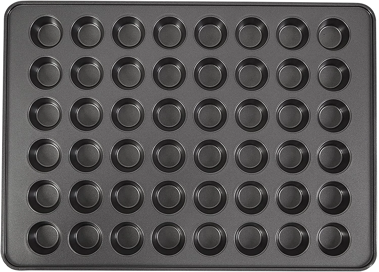 BAKEWARE FOR EVERY DAY AND EVERY OCCASION: You can bake four dozen small muffins or cupcakes at a time with this 48-cup mini muffin pan. Made of steel; reinforced non-stick coating for easy release and quick cleanup